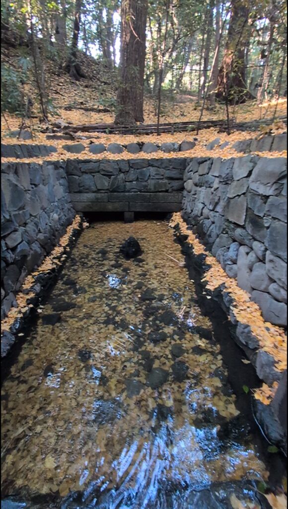 A narrow staircase beside it leads down to a quiet spring where clear water rises from the earth. Visitors gently pour the water three times over the stone monument to make a wish.